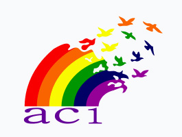 La bandera que sustituye a la tradicional del arco iris es de color blanco y lleva impreso el logotipo de la ACI en el centro, del cual emergen palomas de la paz lo que rescata el concepto inicial del señor Charles Gide y representa a su vez la unidad de los diversos miembros de la ACI. Dicho diseño surge con motivo del Centenario de la ACI en el año 1995. El Arco Iris consta de seis colores y la sigla "ACI" está impresa en el séptimo color...el violeta.