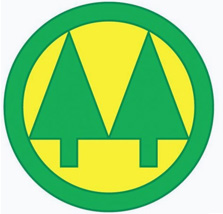El color de los pinos es el verde oscuro, el color de las plantas de las hojas donde esta el principio vital de la naturaleza. El fondo del círculo es de color oro, simbolizando el sol fuente de luz y vida.